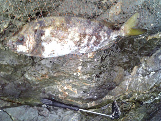 この子達は、完全に無視して遠投気味に釣る事1投目悪戦苦闘ノサレノサレやっと上げたのは、デカイスズミ!